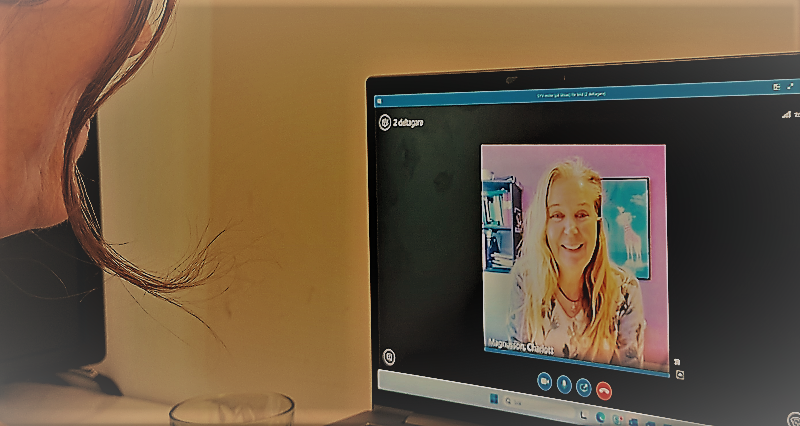 Charlott Magnusson i klientsamtal. SYV-mötena sker i regel via Skype